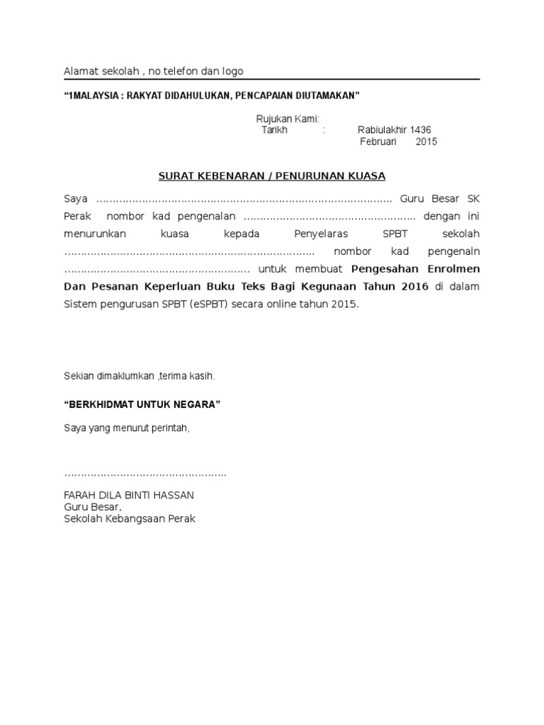 Contoh Surat Penurunan Kuasa Pengetua Pengakap Otosection